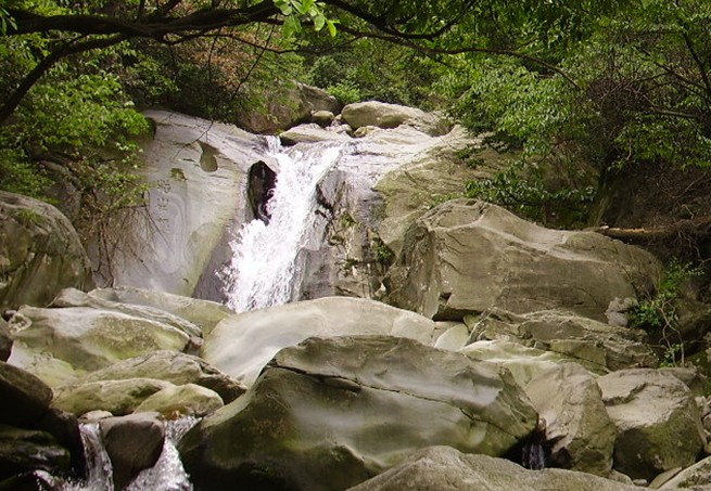 廬山東林大峽谷景區(qū)組成部分,地處剪刀峽深處,地形極險(xiǎn)極幽,三疊形儀各異,或柔或剛,總落差近百米。有觀瀑臺(tái)、觀瀑亭,并有石階沿峭壁通至下瀑潭邊。