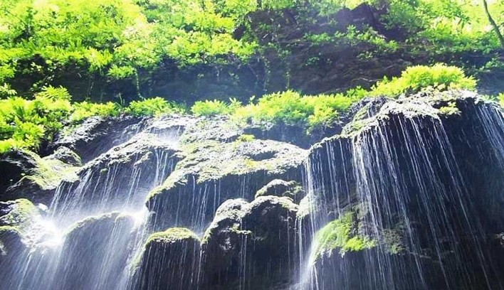 王村東側(cè)有一條小溪,湍急的溪水從北向南即將匯入酉水時(shí),突從懸崖飛瀉而下,形成一條高約60米、寬約40米的瀑布,氣勢(shì)磅礴。王村瀑布分為兩級(jí),飛流先從崖頂直瀉而下,