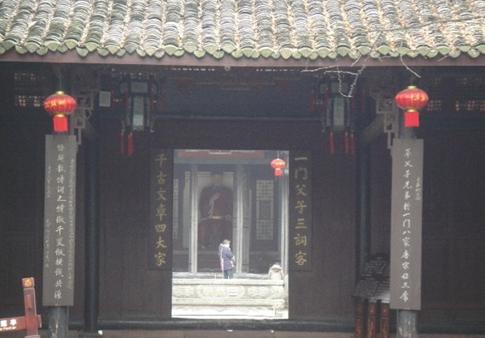 蘇氏父子是北宋人,但他們家在眉山定居,卻還要早上二三百年。據(jù)說唐代有名的詩人蘇味道做眉州地方官時(shí)曾遺下子孫,傳到蘇氏父子時(shí),已是眉山城里的世家了。不過三蘇故居建成祠堂,則是直到明開國洪武年間才得以完成的。