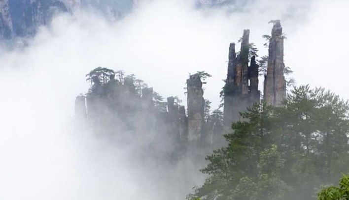 每當雨過轉晴或陰雨連綿天氣,幽幽山谷中生出了云煙,云霧飄渺在層巒疊嶂間,云海時濃時淡,石峰時隱時現(xiàn),景象變幻萬千。霧,使晴日下堅硬的山峰變得妖嬈、飄逸和神秘。觀霧的最好季節(jié)是夏季,天子山是賞霧的最佳去處,也是攝影家常常涉足的地方。