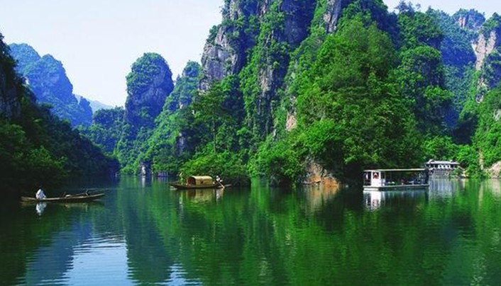 茅巖河,即澧水上游,是繼張家界國家森林公園開放以后開辟的又一個旅游新景區(qū),坐落在張家界市區(qū)以西35公里處。版權所有山東聊城聊之旅國際旅行社有限公司,轉載必究!1986年,茅巖河在全國首創(chuàng)橡皮舟漂流旅游項目。游人乘橡皮船順水漂流既能欣賞到美麗的峽谷風光,又可領略到急流險灘的驚險與刺激。茅巖河漂流段是大庸城西20公里青魚潭往北一段。茅巖河雖灘險流急,但河床坡度小,水位落差不大;險灘較短(一般僅20余米長),而險灘與險灘間的距離卻較長(一般均逾千 米),故浪濤適中,漂流有驚無險。茅巖河主要景點有:血門溝、洞子坊、茅巖灘、夾兒溝、溫塘溫泉、麻陽古渡、茅巖河峽、水洞子瀑布等。沿河兩岸青山綠水、風光如畫,故又稱“百里畫廊”。