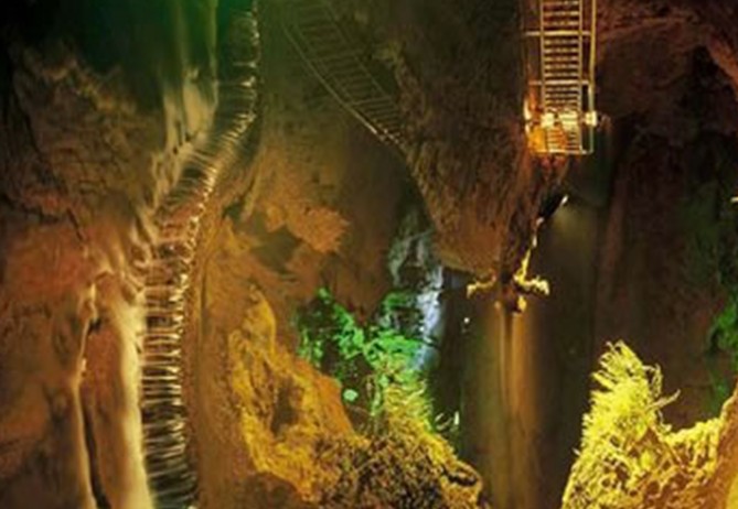 全長(zhǎng)4.6公里,亞洲第一地下長(zhǎng)河的水溶洞奇觀為景區(qū)主要景點(diǎn)。洞內(nèi)景觀保存完好,清澈見(jiàn)底的地下河終年不絕,水平如鏡。倒影似龍宮、仙境,亦真亦幻,真假難辨;落差達(dá)18米的四級(jí)地下瀑布構(gòu)成了雄偉奇麗的瀑布群,形成了洞內(nèi)“飛流直下三千尺,疑是銀河落九天”的人間絕景;游客可在地下河內(nèi)漂流,流速時(shí)快時(shí)慢,讓人既有驚險(xiǎn)刺激的感受又可悠閑自如欣賞地下奇觀美景。有張關(guān)“三絕”: 版權(quán)所有山東聊城聊之旅國(guó)際旅行社有限公司,轉(zhuǎn)載必究!夢(mèng)幻倒影、銀河飛瀑、地腹漂流。再輔以地面山林槽谷、田園風(fēng)光,構(gòu)成了難得的立體自然風(fēng)光;山寨、古戰(zhàn)場(chǎng)遺址、古樸的民風(fēng)、動(dòng)人的傳說(shuō)、自然與人文巧相輝映;再加上長(zhǎng)720米,落差達(dá)85 米的中國(guó)第一高空速滑和獨(dú)具特色的篝火晚會(huì),使游客流連忘返。