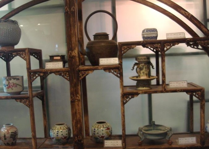 《(碗、箸、磣)展示》:該陳列品較多,其中有花碗、雞公碗、葵口雙系青釉瓶、雙鳳瓶、古戲湯盅和參盅、綠釉瓶、五彩罐、明清系列、豆青系列和各時期的筷子筒等,這些都是早期的食用器具??梢娤热藗儦v來不把飲食單獨視為果腹之需,而且把它列入了文化藝術的范疇。據報導,當今世界有華人的地方就有中餐館,可見我國飲食文化影響力之強,堪稱中國文化寶庫中的一顆光輝燦爛的明珠。我國是禮儀之邦,歷來十分重視風俗。宋代樓鑰曾說:“國家元氣,全在風俗;風俗之本,實乃紀綱。:明代鄭曉則說:“夫世之所謂風俗者,施于朝廷,通于天下,貫于人心,關乎氣運,不可一旦而無焉者。”中國飲食風俗歷經千百年的演變,在人民生活中發(fā)揮不可估量的作用。而這些餐具就是歷史的見證。