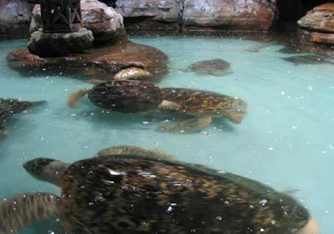 全新推出:“魚樂(lè)新天地”的游樂(lè)項(xiàng)目,讓游客親手投喂海豹、海象、射水魚、大海龜、福鱷等海洋動(dòng)物,增進(jìn)觀眾與海洋精靈動(dòng)物零距離接觸的機(jī)會(huì),樂(lè)趣多多。當(dāng)您在海豹池邊把小魚投向海豹時(shí),幾只小海豹飛身爭(zhēng)搶,水花四濺,有趣極了;身形龐大的海象則食相驚人,當(dāng)您把它愛(ài)吃的鯖魚拋進(jìn)水中,它迅速兇猛地竄起來(lái),“撲通”一聲巨響,浪花沖天而起,瞬間已把食物吸進(jìn)腹中,驚險(xiǎn)刺激;那“水中神槍手”射水魚更是彈無(wú)虛發(fā),您把小昆蟲放在離水面一米高的果實(shí)上,它就會(huì)瞄準(zhǔn)目標(biāo),“突”、“突”射出一條水柱擊中昆蟲落水美滋滋吞下,令人拍手稱奇。