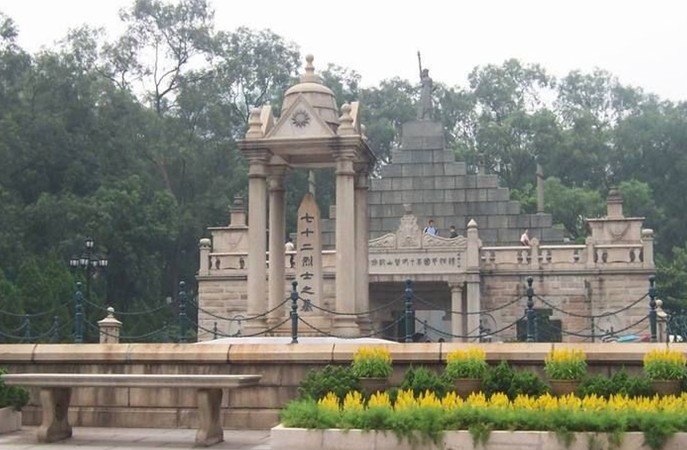 1911年4月27日(農(nóng)歷3月29日),孫中山先生領(lǐng)導的同盟會為推翻清王朝的統(tǒng)治,在廣州舉行起義,結(jié)果失敗,喻培倫等86人(一說100余人)英勇犧牲,其中華僑29人。同盟會會員潘達微,冒著生命危險把散落的七十二烈士遺骸收殮安葬于紅花崗(后改名“黃花崗”,黃花即菊花,比喻節(jié)烈),史稱“黃花崗七十二烈士”。黃花崗墓園始建于1912年,至1921年烈士墓和紀功坊先后落成。孫中山書“浩氣長存”四字鐫于墓坊。入門是寬敞的墓道,長200米。烈士墓構(gòu)筑在崗陵之上,居于墓臺當中,紀功坊峙立墓后。墓道兩旁蒼松翠柏,烘托出滿園黃花輝映碧血的莊嚴肅穆氣氛。南墓道為碑林,鐫刻有“自由魂”“精神不死”等碑文,字字語重千鈞。兩條3米多高的連州青石透雕龍柱,夾道相對。
