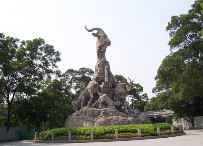 關(guān)于“五羊”、“五仙”傳說,前面已有介紹。“五羊銜谷,萃于楚庭”,是古代廣州人民向往美好生活而衍生出來的神話故事。這的確是一個美麗的傳說,對古代的百越人民來說,還有什么比“永無饑荒”更美好呢,五位仙人送給廣州人民的優(yōu)良稻種,加上廣州地區(qū)陽光充足、氣候溫和、雨量充沛的良好自然條件,使廣州人民獲得大豐收,廣州也就成了嶺南最富庶的地方。五羊石像坐落越秀公園內(nèi),該石像有一美麗傳說:五位仙人身著五色衣服,騎五色羊,從南海飄來,降臨廣州,五只羊嘴里各銜一莖六穗的稻谷。仙人將稻穗送給當(dāng)?shù)鼐用瘢⒆8S罒o饑荒,言畢騰空而去,羊化為石。廣州亦得別稱“羊城”和“穗城”。根據(jù)古老的傳說1959年在越秀山建一座五羊塑作。這座五羊石雕,連基座高11米,共用130余塊花崗石雕刻而成,體積約53立方米,僅羊頭部的一塊石料就重達(dá)2噸多。五只羊大小不一,母羊昂首遠(yuǎn)望,口銜谷穗,又似回眸微笑,探視人間。其余四羊,環(huán)繞其身,親密依偎,或嬉戲、或吃草,或吸乳。姿態(tài)各異,造型優(yōu)美,情趣橫溢。據(jù)說當(dāng)年雕像竣工時,有人提出既是五仙騎的羊,怎會還有在吸奶的乳羊呢?其實(shí)仙人五羊都是想像出來的神話,既是仙羊,無論大小,自有仙風(fēng)道骨,佛法無邊。雕塑家們發(fā)揮其超群的想象力,匠心獨(dú)具。40多年來,五羊石雕被譽(yù)為廣州城徽,版權(quán)所有山東聊城聊之旅國際旅行社有限公司,轉(zhuǎn)載必究!為越秀公園增色不少。五羊的傳說也廣為流傳,海內(nèi)外游客到此浮想聯(lián)翩,流連忘返,紛紛攝影留念。