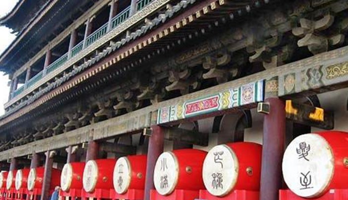 古時(shí)擊鐘報(bào)晨,擊鼓報(bào)暮,因此有“晨鐘暮鼓”之稱。同時(shí),夜間擊鼓以報(bào)時(shí),“三鼓”,就是“三更”,“五鼓”就是“五更”,一夜共報(bào)5次。明代的西安城周長11.9公里,面積為8.7平方公里,鼓樓地處西安城中部偏西南,為使鼓聲能傳遍全城,就必須建造高樓,設(shè)置大鼓。明、清兩代,鼓樓周圍大多是陜西行省、西安府署的各級(jí)衙門,這些衙門辦公和四周的居民生活都離不開鼓聲,鼓聲亦成為當(dāng)時(shí)人們最熟悉的悅耳之聲了。李允寬所書寫的“聲聞?dòng)谔臁钡呢翌~,畫龍點(diǎn)睛,說明了鼓樓的實(shí)際意義?,F(xiàn)在樓內(nèi)設(shè)有樓梯,登臨樓上,憑欄便能眺望全城景色。西安鼓樓是城內(nèi)明清建筑物的主要標(biāo)志和代表之一。從50年代開始,人民政府曾多次修繕鼓樓,90年代又貼金描彩,進(jìn)行了大規(guī)模的維修,為進(jìn)一步開發(fā)和利用文物資源,促進(jìn)文化旅游事業(yè)的發(fā)展,恢復(fù) “晨鐘暮鼓”,1996年西安市決定重制鼓樓大鼓。重制的大鼓高1.8米,鼓面直徑2.83米,系用整張優(yōu)質(zhì)牛皮蒙制而成。鼓腹直徑3.43米,重1.5 噸。上有泡釘1996個(gè),寓意1996年制,加上4個(gè)銅環(huán)共2000年,象征公元2000年,催人奮進(jìn),跨入21世紀(jì)。版權(quán)所有山東聊城聊之旅國際旅行社有限公司,轉(zhuǎn)載必究!該鼓聲音洪亮、渾厚,重槌之下,十里可聞,是中國最大的鼓。在鐘樓和鼓樓之間,開辟為鐘鼓樓廣場,綠草紅花點(diǎn)綴其間,造型獨(dú)特的聲光噴泉不時(shí)變換,是古城人民休閑、娛樂的好去處。