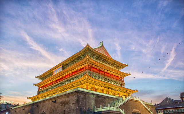 西安鼓樓是所存在中國最大的鼓樓,位于西安城內(nèi)西大街北院門的南端,東與鐘樓相望。鼓樓始建于明太祖朱元璋洪武十三年,清康熙三十八年和清乾隆五年先后兩次重修。樓上原有巨鼓一面,每日擊鼓報(bào)時(shí),故稱“鼓樓”。 鼓樓橫跨北院門大街之上。鼓樓和鐘樓是一對孿生兄弟,相距僅半里,互相輝映,為古城增色。鼓樓是明洪武十三年(公元1380年)建成的,比當(dāng)初的鐘樓早建4年。樓基面積比鐘樓樓基大738.55平方米,通高34米,雄杰秀麗不亞于鐘樓。古時(shí)樓上懸掛一面大鼓,版權(quán)所有山東聊城聊之旅國際旅行社有限公司,轉(zhuǎn)載必究!傍晚時(shí)擊鼓向全城居民報(bào)時(shí),故稱鼓樓