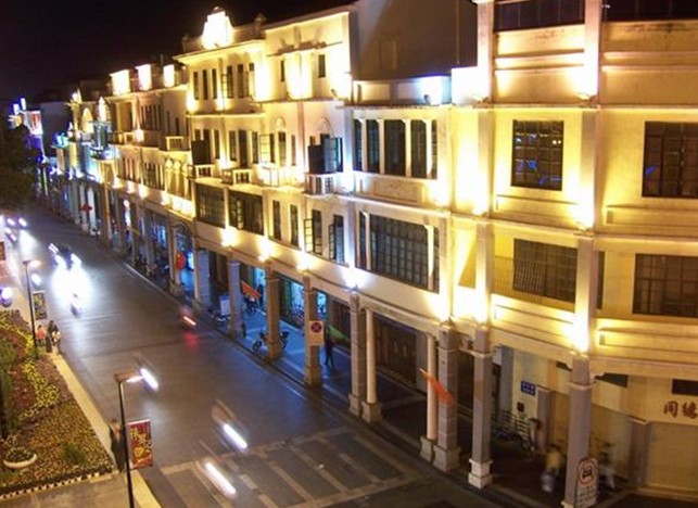 長(zhǎng)堤風(fēng)貌街的建筑大部分在20世紀(jì)二、三十年代建成。建筑風(fēng)格中西結(jié)合,數(shù)百間騎樓各具特色,是江門(mén)的商業(yè)老區(qū),鼎盛時(shí)期,商業(yè)、娛樂(lè)、物流等風(fēng)生水起,高度繁榮,曾有“小廣州”之稱(chēng),也是目前廣東省內(nèi)乃至國(guó)內(nèi)保存較完整且僑鄉(xiāng)特色明顯的歷史文化街區(qū)。2001年,隨著改造整治工程完工,版權(quán)所有山東聊城聊之旅國(guó)際旅行社有限公司,轉(zhuǎn)載必究!長(zhǎng)堤風(fēng)貌街以嶄新的面貌呈現(xiàn)在人們面前,成為江門(mén)城市建設(shè)的一大亮點(diǎn)和市區(qū)極具僑鄉(xiāng)文化特色的街市