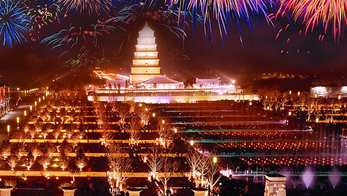 大雁塔廣場(chǎng)始建于公元589年的大雁塔是西安的標(biāo)志性建筑之一,唐代高僧玄奘曾在此譯經(jīng)。大雁塔廣場(chǎng)就位于舉世文明的佛教圣地大雁塔腳下,它是亞洲最大的唐主題文化廣場(chǎng),已經(jīng)成為西安百姓宜賞宜聚、觀光休閑的一處文化旅游勝景。國學(xué)大師霍松林教授游覽后欣然題詩:“水木清華樓殿新,繁花似錦草如茵。廣場(chǎng)兼具園林美,覽勝休閑樂萬民?!?/p>