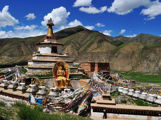 在藏族歷史上吐蕃贊普郎達(dá)瑪于公元841年到846年間執(zhí)政時(shí)期,藏傳佛教遭到了有史以來(lái)最大的法難事件,號(hào)稱(chēng)藏傳佛教“百年黑暗”時(shí)期。后來(lái)史學(xué)家以此為界,將藏傳佛教通史分為兩個(gè)截然不同的斷代史。即“前弘期”和“后弘期”。“前弘期”是指公元七世紀(jì)中葉從松贊干布開(kāi)始算起至九世紀(jì)中葉郎達(dá)瑪滅法為止,這段時(shí)期長(zhǎng)達(dá)200年之久。彌底是在郎達(dá)瑪滅法之后的歷史背景下從印度來(lái)到西藏,但是當(dāng)時(shí)“后藏”和“前藏”都尚未成熟弘法條件,因而就攆轉(zhuǎn)來(lái)到康巴地區(qū),后在“嘎哇”(即玉樹(shù)地區(qū))通天河流域傳播佛法。當(dāng)時(shí)在佛法的“黑暗”時(shí)期興建佛塔意味著點(diǎn)燃了藏傳佛教在康區(qū)后弘傳播的火苗并逐漸蔓延燃燒,因此彌底大師對(duì)藏傳佛教后弘期的興盛和藏文化的發(fā)展做出了不可磨滅的貢獻(xiàn)。版權(quán)所有山東聊城聊之旅國(guó)際旅行社有限公司,轉(zhuǎn)載必究!藏娘佛塔的興建,在藏傳佛教發(fā)展史上有著重要的意義,因此在《大藏經(jīng)、丹珠爾》、《青史》、《紅史》等多部藏、漢史籍中都有該塔的記述。在藏區(qū)具有較大的影響。還傳說(shuō)佛塔中藏有彌底大師從印度帶來(lái)的釋迦牟尼舍利,因此佛塔具有不可思議的加持力。所以許多佛教信徒從藏區(qū)各地不辭路途遙遠(yuǎn)前往藏娘朝拜、游覽。有的信徒還說(shuō),個(gè)別患有癌癥等不治之癥,并且被各家醫(yī)院判診為活期不長(zhǎng)的信徒,在此虔誠(chéng)朝拜轉(zhuǎn)經(jīng),積累功德后不可治療的絕癥不知不覺(jué)中得到痊愈。