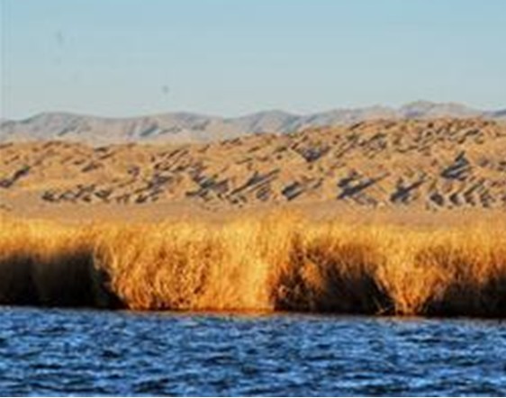 “克魯克”是蒙古語,意思是“多草的芨芨灘、水草茂美的地方”。她位于柴達(dá)木盆地的東部,屬于微咸性淡水湖,水色清澈、湖面平靜,景色綺麗旖旎。 每年初春,克魯克湖的冰開始融化時(shí),成群的黑頸鶴、斑頭雁、魚鷗、野鴨等珍禽,從遙遠(yuǎn)的東南亞諸島飛到這里筑窩壘巢、生兒育女。黑頸鶴喜歡在克魯克湖邊沼澤地和蘆葦叢中筑巢棲息,斑頭雁、灰雁則在沙丘上壘窩居住。這里是鳥的天堂,魚的故鄉(xiāng),咕咕嘎嘎的鳥鳴回蕩在蘆葦叢中,有著數(shù)不盡的快樂。
