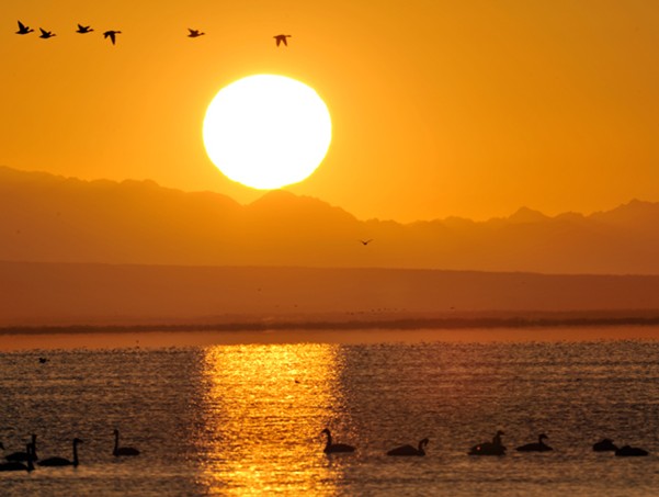 每年初春,可魯克湖和托素湖的冰開始融化時(shí),成群的黑頸鶴、斑頭雁、魚鷗、野鴨等珍禽,從遙遠(yuǎn)的東南亞諸島飛到可魯克湖和托素湖一帶筑窩壘巢、生兒育女。黑頸鶴喜歡在可魯克湖邊沼澤地和在蘆葦叢中筑巢棲息,斑頭雁、灰雁則原意在兩湖之間的沙丘上壘窩居住,魚鷗、棕頭鷗、野鴨等大都在托素湖中的鳥島上群聚。版權(quán)所有山東聊城聊之旅國際旅行社有限公司,轉(zhuǎn)載必究!托素湖鳥島面積約有一平方公里,島上的鳥兒成千上萬,整個(gè)島嶼窩巢遍地、鳥蛋累累,簡單是“鳥兒樂園”和“蛋的世界”??婶斂撕屯兴睾?,被國家列為自然保護(hù)區(qū)。