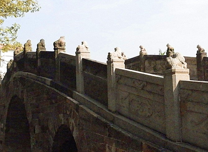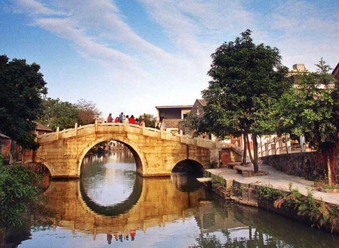 該橋兩邊斜道不砌石級,版權所有山東聊城聊之旅國際旅行社有限公司,轉載必究!行人來往象上下斜坡一樣,古代車馬過橋,可暢通無阻。站在橋上左右眺望,寬闊的河涌兩岸,整齊的石砌墻緊靠河壁。蕉林蔗地上,舊日店鋪基礎依稀可辨,為我們勾勒出一幅繁榮的古代水鄉(xiāng)市集景象。