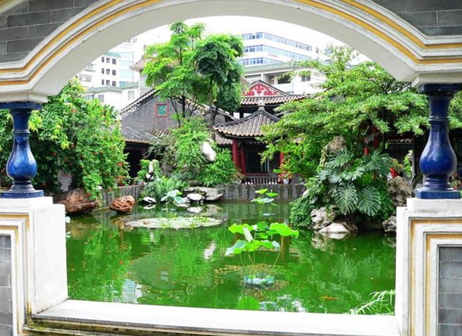 園內(nèi)有大量裝飾性和欣賞性的陶瓷、灰塑、木雕、玻璃。園內(nèi)妙聯(lián)佳句俯仰可拾,名人雅士音韻尚存,藝術(shù)精品比比皆是,令人流連忘返。園林藝術(shù)處理頗具匠心。園內(nèi)疊石假山,曲水流觴,曲徑回廊,景趣盎然。銀杏千秋,百齡龍眼,玉棠春瑞,沙柳飄揚。閑步曲橋喜看金鯉碧波嬉戲;徐行花徑,好賞綠樹時花撲面。時而庭園內(nèi)傳出裊裊弦歌,聽一粵曲,令人心清耳悅,如醉如癡。園內(nèi)保存的一套清朝乾隆年間評定的“羊城八景”,就是一套僅存于世的清代舊羊城八景套色雕刻玻璃珍品,已被初步鑒定為國家一級保護文物。
