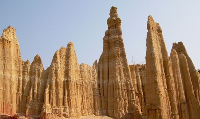 虎跳灘土林位于元謀縣城西北32公里的物茂鄉(xiāng)虎溪行政村,又稱物茂土林,芝麻土林,總面積2.3平方公里?;⑻鵀┩亮中螤钜猿潜?、屏風狀、簾狀為主,高度一般10?15米,最高27米。版權(quán)所有山東聊城聊之旅國際旅行社有限公司,轉(zhuǎn)載必究!從遠處眺望虎跳灘土林,溝壑縱橫,荒涼粗獷、猶如一座廢棄的城堡。而近看則像一組組工程巨大的藝術(shù)群雕。