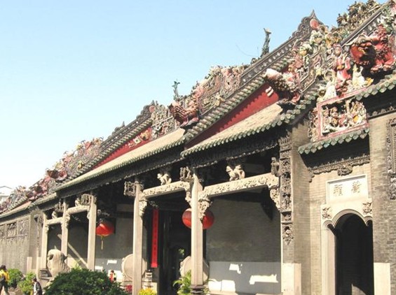 陳家祠堂坐落于廣東省廣州市中山七路。陳家祠堂又稱“陳氏書(shū)院”,始建于清光緒十四年(1888年),光緒二十年(1894年)落成,它是由清末廣東省七十二縣的陳姓聯(lián)合建造的,是廣東省著名的宗祠建筑。陳家祠堂的建筑結(jié)構(gòu)可分為三軸、三進(jìn),建筑面積達(dá)8000平方米。祠堂的每進(jìn)之間既有庭院相隔,又利用廊、廡巧妙地聯(lián)接起來(lái),共有九座廳堂和六個(gè)院落,祠堂的整體布局上下對(duì)稱,殿堂樓閣,虛實(shí)相間,氣勢(shì)雄偉。“聚賢堂”是陳家祠堂中軸線的主殿堂,也是陳家祠整個(gè)建筑組合的中心,堂的正面是一座寬闊的石露臺(tái),周圍用嵌有鐵花的石欄板環(huán)繞。祠堂建成之初時(shí)的聚賢堂是供族人集會(huì)之用,后來(lái)改作宗祠,兩邊的側(cè)房供書(shū)院使用。