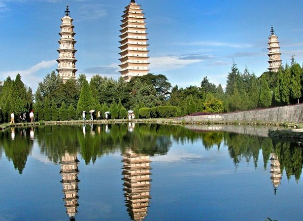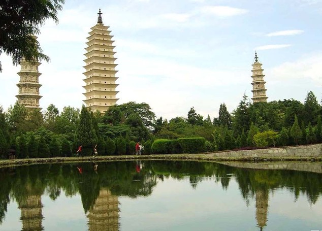 三塔倒影公園[1]位于崇圣寺三塔以南1千米處,公園坐北朝南,背靠三塔以園內(nèi)的潭水能倒影三塔雄姿而得名。