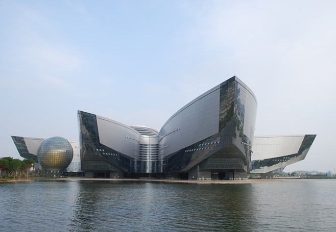 就是這個木棉花和航空母艦的結(jié)合體,廣東科學中心總投資為19億元人民幣,全部由政府出資,是目前國內(nèi)投資最大的科學館項目??偨ㄖ娣e達13.75萬平方米,成為目前世界上展示面積最大、功能最齊全的科普教育場館。