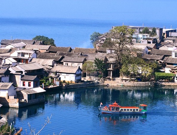 雙廊在洱源縣的東南和洱海的東岸,古名拴廊,一名良甸村。雙廊南有長(zhǎng)約7公里的弧形海岸,名蓮花曲,北有長(zhǎng)約5公里的弧形海灣,稱羅蒔曲,二典形如兩條長(zhǎng)廊,是洱海著名的九曲中的二曲。洱海中有風(fēng)光秀麗的工幾島(天生營(yíng))。版權(quán)所有山東聊城聊之旅國(guó)際旅行社有限公司,轉(zhuǎn)載必究!金梭島,將居住在二曲之間的青山、蓮花曲、長(zhǎng)育、大建旁、島嶼旁、天生營(yíng)、康海、良甸村(今雙廊)、伙山等9個(gè)自然村均拴在廊內(nèi),故稱拴廊。又因?yàn)?ldquo;二曲”、“二島”均為“雙”,清代以后將拴廊改為雙廊。