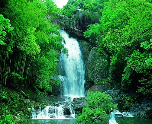天臺山優(yōu)美的自然景觀,展現(xiàn)了秦嶺山脈雄偉博大的氣魄,可謂“平疇突起三千尺”、“氣壓昆侖天柱矮”;濃縮秦嶺山脈風光于一處,具有峻峰、幽谷、翠綠、碧水四大風景特色。峻峰:天臺山重巒疊嶂,峭壁對峙,群山萬壑之間,云霧迷漫,氣象萬千。風景區(qū)內(nèi)的天臺蓮花峰、天柱峰、寄馬峰、人頭峰、神農(nóng)峰、雞峰山、大散嶺等山峰均為花崗巖峰林地貌,群峰爭雄,凌空險峻。天臺山溝壑眾多,崖峻谷深,林木蔽日,使人置身于“嵐光晴亦靄,樹色郁猶蒼”“偶聞松濤聲,卻是萬籟靜”的境界。不少深谷至今人跡罕至,奧秘莫測。天臺山林海茫茫,群峰巨石隱于蒼松翠柏之中,組成一幅幅色彩斑斕的自然畫面。天臺山水量豐富,河、湖(水庫)、溪、瀑、潭、泉俱全,山環(huán)水繞,縱橫交錯,水質(zhì)潔凈,碧波蕩漾。