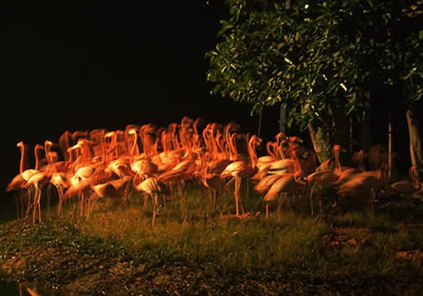 游客乘坐古老裝飾小火車,版權(quán)所有山東聊城聊之旅國際旅行社有限公司,轉(zhuǎn)載必究!在月色下經(jīng)過七個主題景區(qū):中華山地﹑南美河谷﹑南非高原﹑印度森林﹑澳洲灌木林﹑東非草原﹑西非沼澤。在每個景區(qū)里,野生動物會隨時出現(xiàn)。例如在河谷岸邊可見南美貘﹑黑頸天鵝;草原區(qū)有在夜間出沒的獅子;黑色的森林內(nèi)與狼﹑孟加拉虎擦身而過……坐在有堅固圍欄的小火車內(nèi),游客可以安全近距離的觀賞野生動物在夜間的動態(tài)。