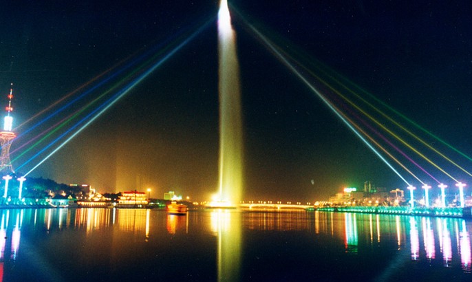 于1998年10月1日動工,1999年2月6日竣工。 噴泉集聲、光、水、色于一體, 由主噴和副噴兩部分組成。主噴169米的水柱直沖云霄,氣勢雄偉,蔚然壯觀,顯示出欲與天公試比高的氣派,為目前亞洲第一高噴泉;副噴由1068個(gè)噴嘴、618盞水下彩燈組成,在歡快愉悅的樂曲中,通過直噴、水簾、水浪、水松、內(nèi)拋、搖擺、編網(wǎng)等8種水型。
