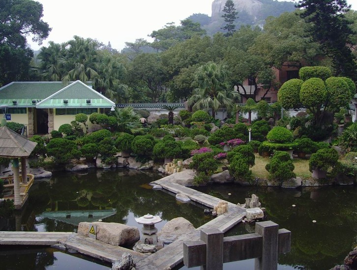 福建菽莊花園建于1913年,位于福建鼓浪嶼島南部,面向大海,背倚日光巖,原是地方名紳林爾嘉的私人別墅,園主人以他的字“叔臧”的諧音命名花園,1955年獻作公園。菽莊花園利用天然地形巧妙布局,全園分為藏海園和補山園兩大部分,各景錯落有序,園在海上,海在園中,既有江南庭院的精巧雅致,又有海鷗飛翔的雄渾壯觀,動靜對比,相得益彰。園內還有四十四橋和十二洞天等景點。