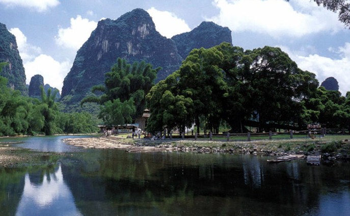 大榕樹位于陽朔縣城南7.5公里。樹高17米,樹圍7.05米,遠望似一綠色巨傘撐立地上。隔河有穿巖,組成穿巖古榕景點。陽朔大榕樹景區(qū)是世界巖溶喀斯特地貌峰林峰叢最集中、最典型、最有代表性的地方,以奇特的巖溶喀斯特地貌、如詩如畫般的山水田園風光和豐富的壯族少數(shù)民族民俗文化聞名天下。詩情畫意韻律優(yōu)美的稻田,清澈見底的小河,青翠濕潤的山峰,鳳尾竹,壯家村寨,水車,清新爽人的空氣,標示著這里人與自然的完美和諧,更似一幅藝術水平極高的中國水墨山水畫長卷。曾被美國哈佛大學博士、世界著名園林專家卡爾稱為:在中國看到了最美麗的地方。風靡中國及東南亞地區(qū)的電影《劉三姐》很多鏡頭在此拍攝,影片中劉三姐與阿牛哥大榕樹下拋繡球定終身的情景打動了天下有情人。