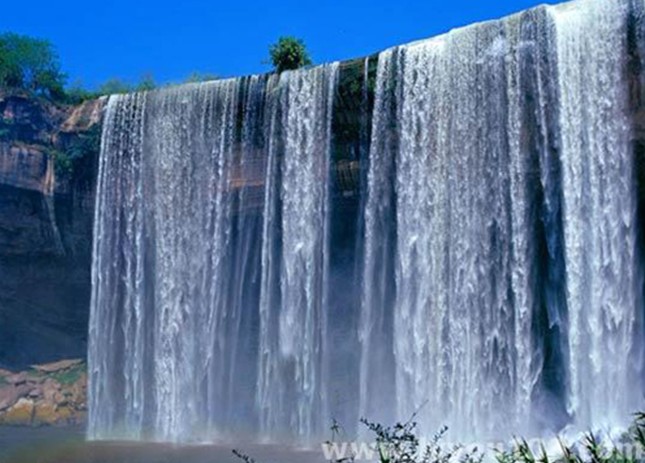 青龍大瀑布高120米,寬40米共有3級呈階梯狀,瀑布從崖頂騰空而起如同從天而降,讓人很容易記起李白“飛流直下三千尺,疑是銀河落九天”的詩句,瀑布?xì)鈩莅蹴?,猶如千軍萬馬,直搗深谷,水流過處,飛珠濺玉,雷鳴轟動(dòng)。潭面瀑布撞擊的水花如同千簇綻開的雪蓮,壯觀無比。