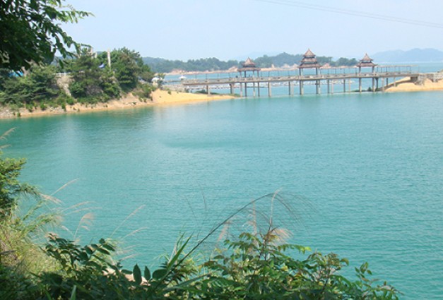 水月灣是根據(jù)小說《鏡花緣》建成的,《鏡花緣》里記載百花仙子降生于廣東河源縣水月村。經(jīng)過一條長(zhǎng)長(zhǎng)的走廊親水長(zhǎng)廊,99個(gè)我國(guó)上下五千年來各名家所書的“水”字配上繽紛的彩繪說明,讓人領(lǐng)略到的是悠久水文化的獨(dú)特魅力。在得月茶軒,一杯湖水沏泡的清茶,一碟客家風(fēng)味小吃,品味到的是萬(wàn)綠湖最秀麗的水光山色。躍入親水泳場(chǎng),演繹的又是萬(wàn)綠湖不一樣的激情,讓人親近純潔,倍感身心洗禮;玩轉(zhuǎn)各種水上娛樂項(xiàng)目,這樂趣,非此地不可得。