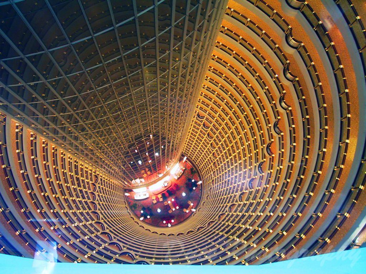 全國(guó)首批4A旅游景點(diǎn)金茂大廈88層觀光廳,面積為1520平方米,高度340.1米,是目前國(guó)內(nèi)最高最大的觀光廳,榮膺上海大世界基尼斯之最。版權(quán)所有聊城聊之旅國(guó)際旅行社有限公司,轉(zhuǎn)載必究!兩臺(tái)每秒運(yùn)行9.1米的垂直升降電梯,一次可乘載33位旅客,只需45秒鐘可將游客從地下一層直送88層。登高遠(yuǎn)眺,大上海的景觀盡收眼底,浦江兩岸高樓林立,黃浦江上百舸爭(zhēng)流,您可親身體驗(yàn)"落霞與孤騖齊飛,秋水共長(zhǎng)天一色"的美景。賞完外景,您還可以從上往下觀賞世界舉世無(wú)雙的酒店中庭,它直徑27米,28道環(huán)廊扶手在霓虹燈的照射下,金光閃閃。一道道環(huán)廊如同一排排畫(huà)廊,美不勝收。此情此景,無(wú)不激動(dòng)人心,您會(huì)不由自主地拿起照相機(jī)留下永恒的紀(jì)念。金茂大廈無(wú)與倫比的酒店中庭被建筑師、科學(xué)家、文學(xué)家譽(yù)為“共享空間”、“金色的年輪”、“時(shí)空隧道”。