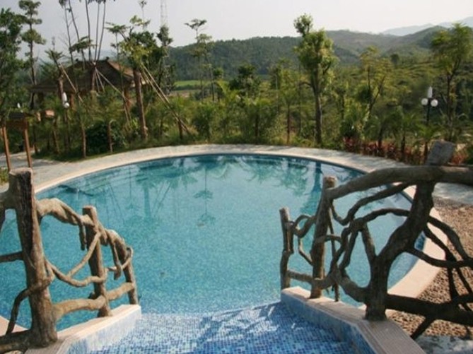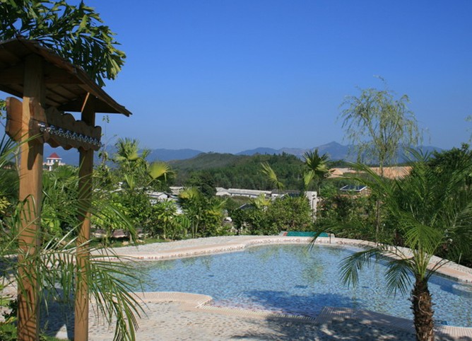 山莊有客房75間,可以同時(shí)接待180人旅游渡假或商務(wù)會議。配套設(shè)施有大型游泳池,大小溫泉池、籃球、羽毛球、乒乓球、臺球、棋牌、茶座、會議廳、舞廳、卡拉OK房等[1]。
