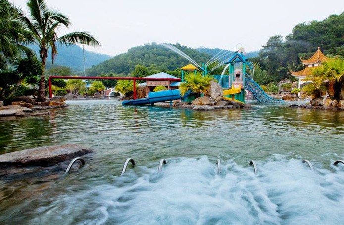 在中國第一個溫泉之鄉(xiāng)——恩平市,有一座被環(huán)嶺群峰擁抱著的溫泉山,山下的三十多處自噴溫泉,日流量為6000立方米,其溫泉水溫高達73℃,水質(zhì)晶瑩幼滑,并含有偏硅酸、氟、氫、硫等多種有益于人體健康的元素,是世界少有的滑溫泉,這就是帝都溫泉。