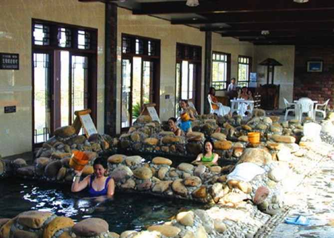 本世紀(jì)中葉,雖有科學(xué)家倡議,辟金山溫泉為地?zé)崮茉?,惜因國力所限,未能如愿。近年,?dāng)?shù)刎斦赓Y6億元,辟地800余畝,于溫泉四周,建成溫泉景區(qū)、度假酒店、健身中心及豪華別墅,雖溫泉日流出水量2000余噸,以每人每日用水一噸計,年可接待游客80萬眾,但目前客房僅200余間,每于周末,人滿為患總統(tǒng)套間亦不閑置,有遠(yuǎn)客欲求于度假酒店一宿而不可得,唯有沐后復(fù)驅(qū)車折返市區(qū)。岑副市長介紹,當(dāng)局已全力投資,籌建國際會議中心、會員大夏等配套設(shè)施,期至后年,當(dāng)可年接待60萬人次,一座溫泉新城,于其時也,將矗立于金山吉水之間。