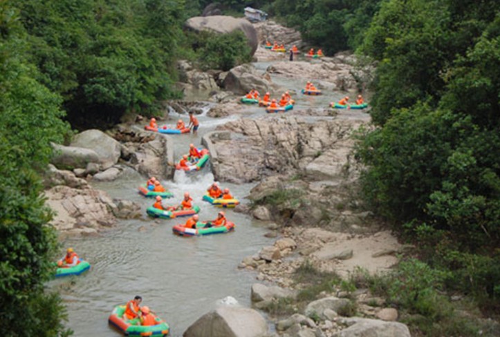 臺山北峰山漂流位于古兜山省級自然保護(hù)區(qū)內(nèi),省級森林公園原始峽谷之中,漂流河段全程4公里,需時1時20分鐘。自然保護(hù)區(qū)內(nèi)茂密的原始森林和天然峽谷賦予北峰山漂流與眾不同的特色,集瀑布、深潭、奇石、密林、珍稀動植物、沙灘于一身,在全省獨(dú)樹一幟,自然景色之美令人為之驚嘆。全程80多米的落差,密林之下,瀑布飛舟,在峽谷中穿石繞壁,凌波逐浪,融逍遙漂與勇士漂于一體。
