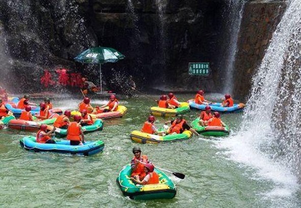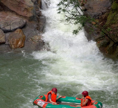 可以用四個字來概括:“險、幽、綠、趣”。第一:險。水道最大落差達12米,全程落差近100米,激流勇進,感覺非常刺激過癮。第二:幽。水道有兩個隱秘幽深的涵洞,橡皮艇駛進去,仿佛來到了別有洞天的世外桃源,再加上兩岸一叢一叢的筍竹和扇形開放的芭蕉葉,幽靜之感油然而生。版權(quán)所有山東聊城聊之旅國際旅行社有限公司,轉(zhuǎn)載必究!第三:綠。整個五星度假區(qū)就在一座巨大的五星林場中,郁郁蔥蔥的綠樹隨處可見,再加上一潭潭的清泉倒影著綠樹,給游人的感覺是滿眼的綠色。第四:趣。五星漂流在水道設(shè)計和景點的安排上,都凸現(xiàn)了一個“趣”字,能讓游人在沖浪中感受驚險與趣味,在玩趣中能享受大自然的美。