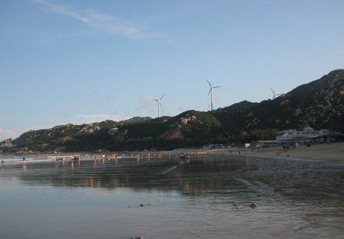 青澳灣,灣口朝東南,灣腹很深,灣弧達(dá)2.9公里。嶺頭新建的一座涼亭,名曰:“覽月亭”。成排成片的木麻黃樹循著孤形沙灘蔓延開去。海浪、白沙、林帶以及林中新筑的各式亭臺樓閣,構(gòu)成了色彩斑斕的海市蜃樓圖景。據(jù)說沙灘長達(dá)2.4公里,沙帶寬近百米。沙灘向海延伸坡度平緩,數(shù)十米內(nèi)海水僅米余深,是海浴的理想場所,被譽(yù)為“泳者天池”,是廣東省僅有的兩個A級海濱浴場之一。