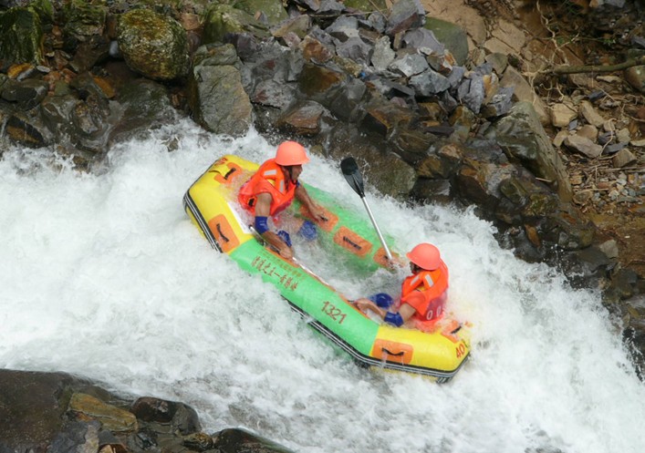 全程勇猛漂河道長4.8公里,總落差168米,大小落差有130多處,漂時150--180分鐘。全程既可感受澎湃刺激而安全的漂流,又能在自然生態(tài)的環(huán)境中享受一流水質(zhì)的無窮魅力:漂過一山又一山,賞盡一景又一景;人在水中漂,如在畫中游。(提示:1.3米以下的游客請勿參與,16歲以下的游客請在成人陪同下參與