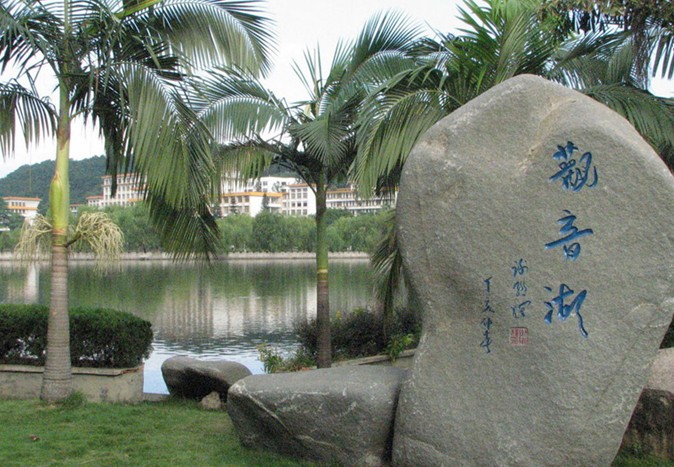 觀音嶺位于碣石鎮(zhèn)北與金廂交界之處,因嶺上有觀音禪淙堂(水月宮)而得名。嶺下海灘長達8km,海中距岸lOOm處水深才1,5m,距岸200m水深2m。沙白、水清、浪小,是一個理想的天然游泳海灘。嶺前奇山眾多,有周恩來、葉挺同志當年搶渡香港下海處的龍石,汕尾市境內最大的摩嶺刻“鎮(zhèn)海石”,明欽差大臣成大猷、鄭岳山刻“鎮(zhèn)海石”,“揚威止水”于鎮(zhèn)海石上。