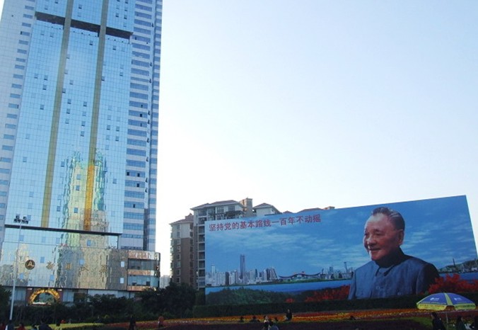 鄧小平畫像是位于中國廣東省深圳市福田區(qū)深南大道北、荔枝公園東南口的巨型室外宣傳畫,始建于1992年6月28日,是深圳標(biāo)志之一,深圳的著名旅游景點。近年來已成為海內(nèi)外游客緬懷這位中國改革開放總設(shè)計師的最佳去處。 據(jù)有關(guān)方面統(tǒng)計,每年大約有百萬以上游人來此與這位世紀(jì)偉人“合影留念”。 鄧小平畫像自建成以來,就不斷有來自世界各地游客前來參觀。
