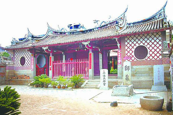 大天后宮為三進(jìn)門(mén)式。由大門(mén)朝里望,透過(guò)三進(jìn)逐次升高的天井和房舍狹長(zhǎng)的空間,可以遙見(jiàn)那香煙繚繞、金黃帷幕下的全身媽祖神像。媽祖慈眉善目,神態(tài)安詳。據(jù)說(shuō)媽祖原來(lái)是粉紅面,但經(jīng)百年來(lái)受香火的薰繞,現(xiàn)在看到的媽祖已成了黑色的“香煙面”了。兩旁配祀千里眼、順風(fēng)耳二將的泥雕,表情細(xì)膩,體態(tài)生動(dòng),古銅色的肌膚、一塊塊突起的肌肉,顯得極為兇猛威嚴(yán),雕刻精細(xì)入微,栩栩版權(quán)所有聊城聊之旅國(guó)際旅行社有限公司,轉(zhuǎn)載必究!如生,實(shí)為雕刻精品。兩邊的神龕里還供奉著東、西、南、北四海龍王和水仙尊王。神奇古怪,嶙峋不凡,也都被煙薰成了黑臉。這些都是與海上的航海、救難有關(guān)的神。該廟還有一個(gè)特色就是除了正殿的媽祖稱(chēng)為大媽外,還配有所謂的“二媽”、“三媽”的媽祖神像,造型僅為大媽的一半,臉色為粉紅色,兩眼張開(kāi),與媽祖神像眼瞼呈下垂?fàn)畈煌?/p>