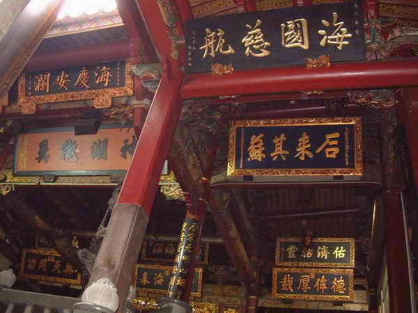 走進(jìn)臺(tái)南大天后宮時(shí),才發(fā)現(xiàn)大天后宮那富麗堂皇,威嚴(yán)顯赫的氣派,已極盡了宮殿建筑的豪華壯麗。由大門(mén)朝里望,透過(guò)三進(jìn)逐次升高的天井和房舍狹長(zhǎng)的空間,可以遙見(jiàn)那香煙繚繞、金黃帷幕下的全身媽祖神像。廟宇堂皇壯觀,信徒眾多,香火鼎盛。由于受到歷代官府的整修和保護(hù),大天后宮內(nèi)文物保存較多。廟中神像佛像也多為名家雕塑,石雕、木雕的柱、窗、梁都有很高藝術(shù)價(jià)值。還有許多古碑、古匾、古聯(lián)等珍貴的文物,據(jù)說(shuō)單單古匾就有200多塊,平時(shí)無(wú)法全部掛出來(lái)。最寶貴的是雍正皇帝所賜的“神昭海表”、咸豐皇帝的“德侔厚載”、光緒皇帝的“與天同功”等御筆匾。由此可見(jiàn),大天后宮與普通天后宮、普通廟宇相比,簡(jiǎn)直就有一個(gè)天上、一個(gè)地下的感覺(jué)。