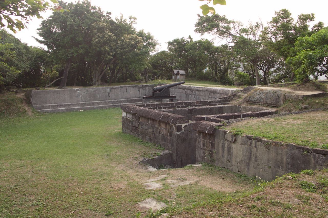 二沙灣炮臺(tái)現(xiàn)經(jīng)重修,已約略可見(jiàn)當(dāng)年古炮堡壘的風(fēng)發(fā)英姿。勒有“海門(mén)天險(xiǎn)”四字的城門(mén)為全區(qū)的精神象徵,穿過(guò)古意盎然的拱門(mén),映入眼簾的是石鋪的廣場(chǎng)通道,兩側(cè)原為兵舍營(yíng)房,如今僅剩斷垣殘壁及如茵綠草;由通道盡頭的臺(tái)階拾級(jí)而上,即抵海門(mén)天險(xiǎn)的精華——古炮區(qū),數(shù)門(mén)外觀依舊完好的古炮,以及碉堡、炮墩、彈藥庫(kù)、古井等遺跡,發(fā)人幽思,由此俯望基隆港口,依稀可感受當(dāng)年戰(zhàn)事的激烈。
