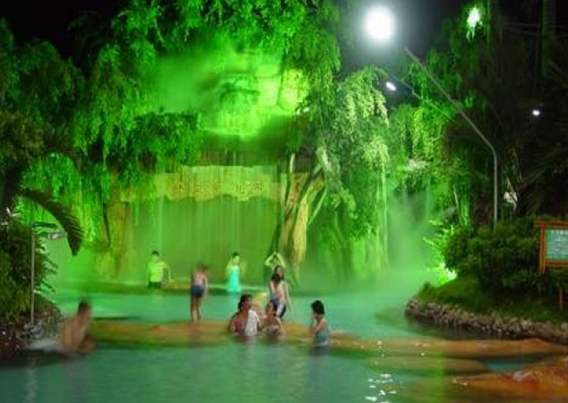 藍(lán)月灣溫泉位于湛江海濱賓館內(nèi)。藍(lán)月灣溫泉:包括一個(gè)大泡池、四個(gè)中泡池、三十多個(gè)風(fēng)情各異的小泡池及大小游泳池各一個(gè)。藍(lán)月灣溫泉源自600多米地底深處,經(jīng)地質(zhì)礦產(chǎn)部廣東省中心試驗(yàn)室專家檢測(cè),泉水水溫43℃,水質(zhì)無色透明純凈,不受地表污染,富含偏硅酸,銅,鍶,硒等多種有益人體健康的礦物質(zhì),對(duì)風(fēng)濕,關(guān)節(jié)炎,神經(jīng)性骨痛等多種疾病均有特殊療效。在美容,減肥方面更是有顯著功效,露天溫泉區(qū)有SPA水療區(qū)、石板溫泉、蒸汽浴、貴賓房以及功能各異的大小溫泉泡池三十六個(gè),是一個(gè)都市人緩解壓力,享受愜意人生的理想之地。