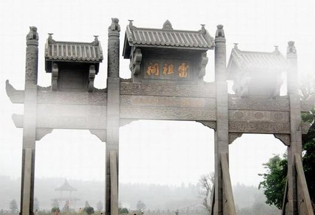 唐貞觀十二年正月十五日,正當(dāng)城工告竣,文武僚屬歡欣巡城之際,文玉卻生兩翅,白日升天。百官見狀,伏地而拜,文玉終年68歲。為了紀(jì)念這一個德政昭彰的地方官,郡民于州城西南五里英鎊山立詞以把,即今之“雷祖調(diào)”。調(diào)依山而筑,北村南趨,山下是一望無垠的萬頃洋田,其勢極其雄偉壯觀。調(diào)分三進(jìn),由山門、正殿、側(cè)殿、后殿、東西康、鐘鼓樓、碑廊等建筑組成,全部建筑沿中軸線布局。順山門青石板臺階抬級而上可直通后殿,占地面積一萬多平方米,是嶺南地區(qū)最大的洞堂之一。山門依屋字三間面寬洞開而開,為硬山頂,硬山潤模式結(jié)構(gòu)。山門對聯(lián):“霹雪開天南一祖,聲名為海北同尊”,是對雷祖降世的美麗傳說及“受職父母邦,德政彰明”的贊譽(yù)。二進(jìn)為洞的建筑主體,分正殿及東、西側(cè)殿。正殿前設(shè)有拜事,整個建筑形制呈“凸”字形排列,依次供奉陳文主(中)、李太尉(即漢朝的李廣,居左)及英山石神(右),俗稱“雷桐三殿”。正殿面寬進(jìn)深各三間,硬山頂,四往格梁式梁架結(jié)構(gòu),舉梁平緩,前檐顧出檐極寬,建筑風(fēng)格獨(dú)特,富有地方特色。沿著前增顧可從東側(cè)殿直通西側(cè)殿,殿前屏風(fēng)精雕細(xì)刻,玲挑剔透,巧奪天工。