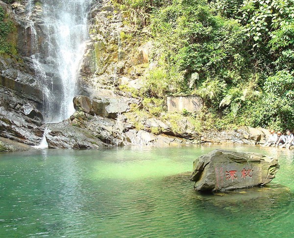 鼎湖山飛水潭,又名龍?zhí)讹w瀑,位于鼎湖山南半山腰、慶云古剎下東側。 去飛水潭,由榮睿碑亭拾級登山,沿曲徑云封直上,至半山腰向右拐,過眠綠亭即可。當然,亦可在榮壑碑亭前面的山溪邊起步,一直溯溪而上。這里,山石嶙峋,瀑布從40多米高的崖頂深處狂奔而來,直往下飛瀉,忽而形成千尺飛流,如白練懸空,忽而濺作滿空雨花,如輕紗曼舞。瀑布下,如注的水流匯成一泓碧水,中有巨石,上刻“枕流”2字。辛亥革命后,孫中山先生偕夫人宋慶齡游覽鼎湖山時,曾在此游泳,現(xiàn)崖壁上刻有宋慶齡手書的“孫中山游泳處”6個大字。潭水由此再往下傾瀉,版權所有山東聊城聊之旅國際旅行社有限公司,轉載必究!繼而形成另一個深潭,據(jù)傳為蟄龍窟,故曰:浴龍池。飛水潭側建有更衣室,崖間建有觀瀑亭,崖壁鐫刻著許多贊美飛水潭的摩崖大字和方寸小楷,如“噴雪”、“能移我情”、“天然圖畫”、“飛泉咽危石”等,頗有詩情畫意。 夏日到此,觀瀑、游泳、濯足,均感遍體清涼,煩熱頓消。