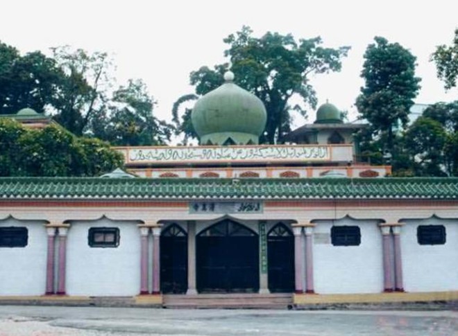 位于廣東肇慶城西端洲區(qū)康樂中路。此寺建于清乾隆三十二年(1767),最初創(chuàng)寺于忠勇坊,后遷至現(xiàn)址。占地面積1285.2平方米。寺內(nèi)有禮拜殿、兩廊房舍等建筑,禮拜殿前檐石柱陰刻楷書檻聯(lián)“勤念禮課齋,七日一朝須敬畏;守忠存仁義,六行三物貴真誠”。殿內(nèi)其中四根石柱上陰刻回文古蘭經(jīng)。寺內(nèi)還存刻于清嘉慶十九年(1814)高2.23米、寬0.27米的木板楹聯(lián)“何須色相昭彰,五拜中嚴(yán)然如在:漫道典型迂遠(yuǎn),卅卷內(nèi)自有真?zhèn)?rdquo;。1983年,因建筑物嚴(yán)重殘破傾危,遂重建阿拉伯式建筑,1984年9月竣工。寺由禮拜殿、經(jīng)堂、兩廊、浴室、辦公室、阿訇宿舍、廚房、停生閣等建筑群組成,主體建筑禮拜殿,建筑面積434.8平方米,頂部是白色圓形尖塔式頂,以示其真主至大,而圓球尖端頂上的彎形月,則是伊斯蘭教場所的標(biāo)志。大殿正面設(shè)有三個殿門和大殿南北兩廊口,合為五個門口,比喻念、禮、齋、課、朝五功及五時拜,用鋼筋混凝土建成的禮拜殿,殿內(nèi)不設(shè)偶像,寬廣空曠。