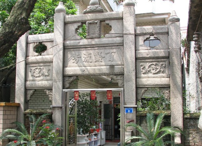 百齡流芳坊位于廣東省中山巿黃圃鎮(zhèn)鎮(zhèn)一村,建于清代道光十八年(1838年)。為四柱三間通天式牌坊,以花崗石雕鑿構(gòu)筑,高5米。正面主間上豎刻“圣旨”(陽(yáng)刻)二字,下方橫匾陽(yáng)刻:“百齡流芳”四字,上款陰刻“道光戊戌”,下款陰刻“何高啟立”。背面上豎刻“恩榮”(陽(yáng)刻)二字,下方橫匾陰刻:“升平人瑞”四字。版權(quán)所有山東聊城聊之旅國(guó)際旅行社有限公司,轉(zhuǎn)載必究!牌坊柱下鑲嵌抱鼓石?,F(xiàn)保存尚好。