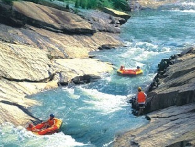 濃蔭覆蓋下的漂流河,約一千多米長,全天然五桂山溪水,白玉般蜿蜒曲折于蒼天翠林中,溫柔與刺激并行。遇激流,可體驗狂濤浪聲中穿梭的驚險刺激,享受那飛越的驚喜,既刺激又鍛煉人的意志;在淺灘,版權(quán)所有山東聊城聊之旅國際旅行社有限公司,轉(zhuǎn)載必究!溫柔的滑行,可賞兩岸滿目山景,聽小鳥淺吟低唱,清心潤肺......激流澎湃的礦泉水,一波波簇?fù)?,岸邊錯落的綠意,引來幾只野鳥停駐,幽幽翠竹林。
